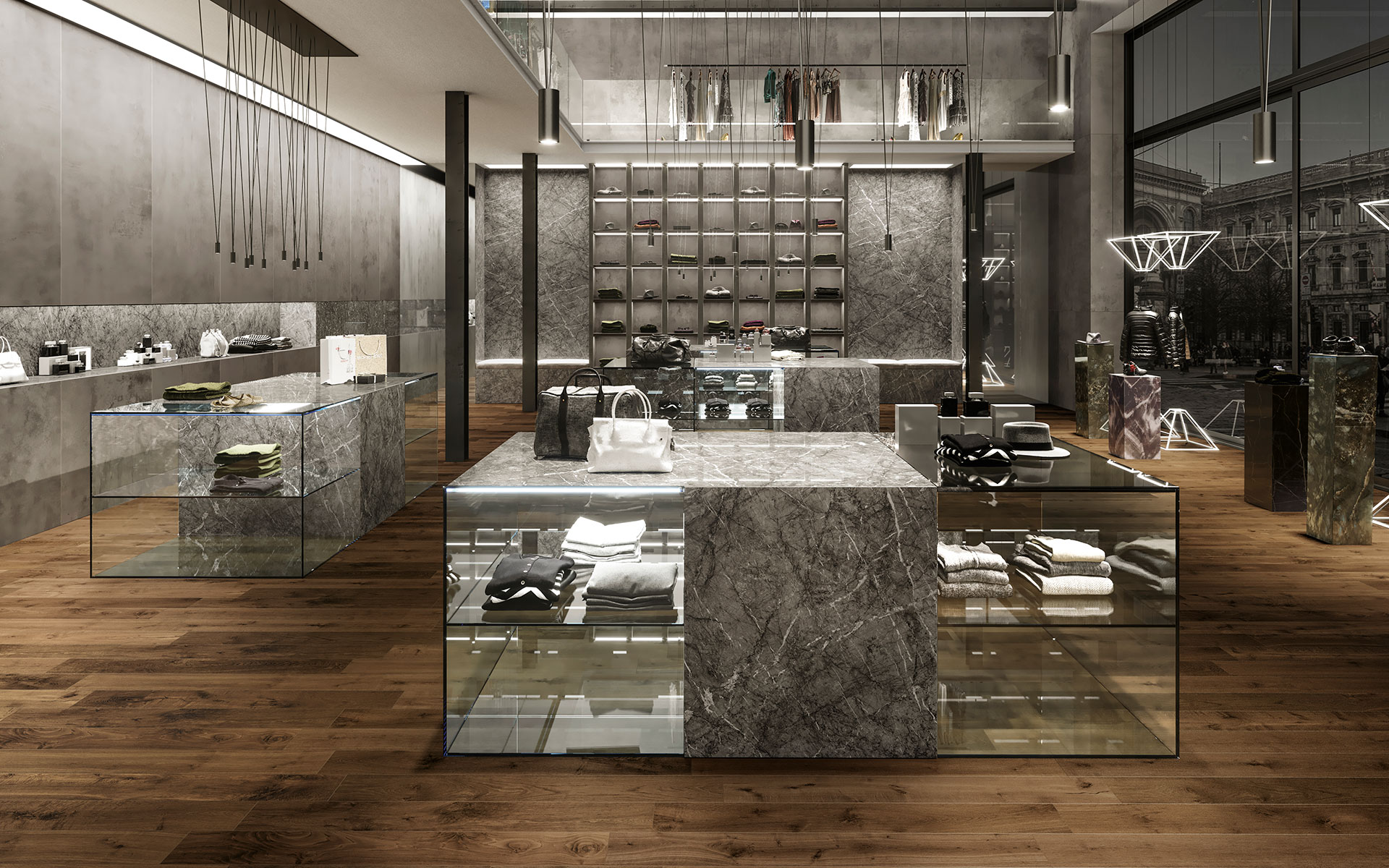 • Grigio Intenso Used For A Cabinet Clad And On Walls